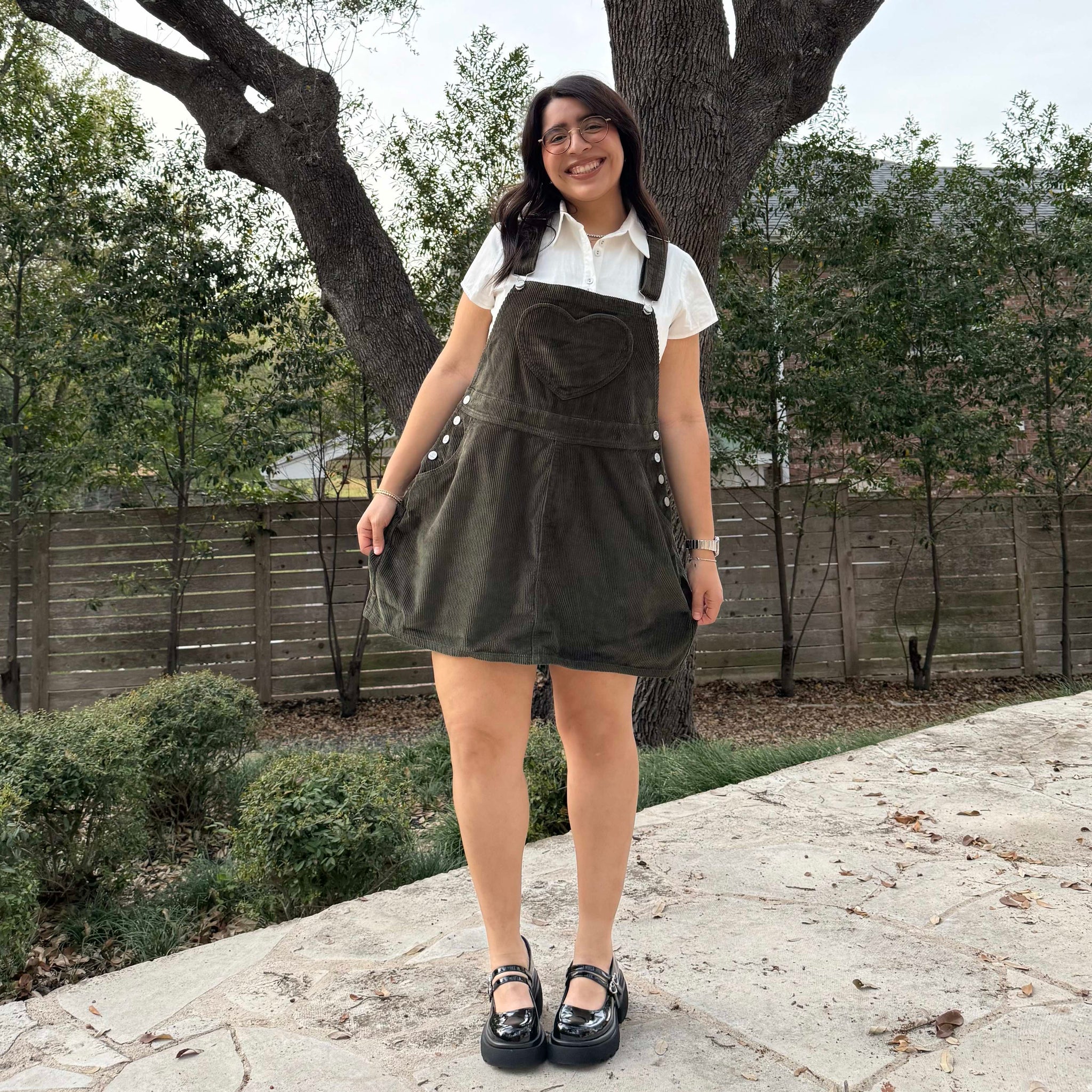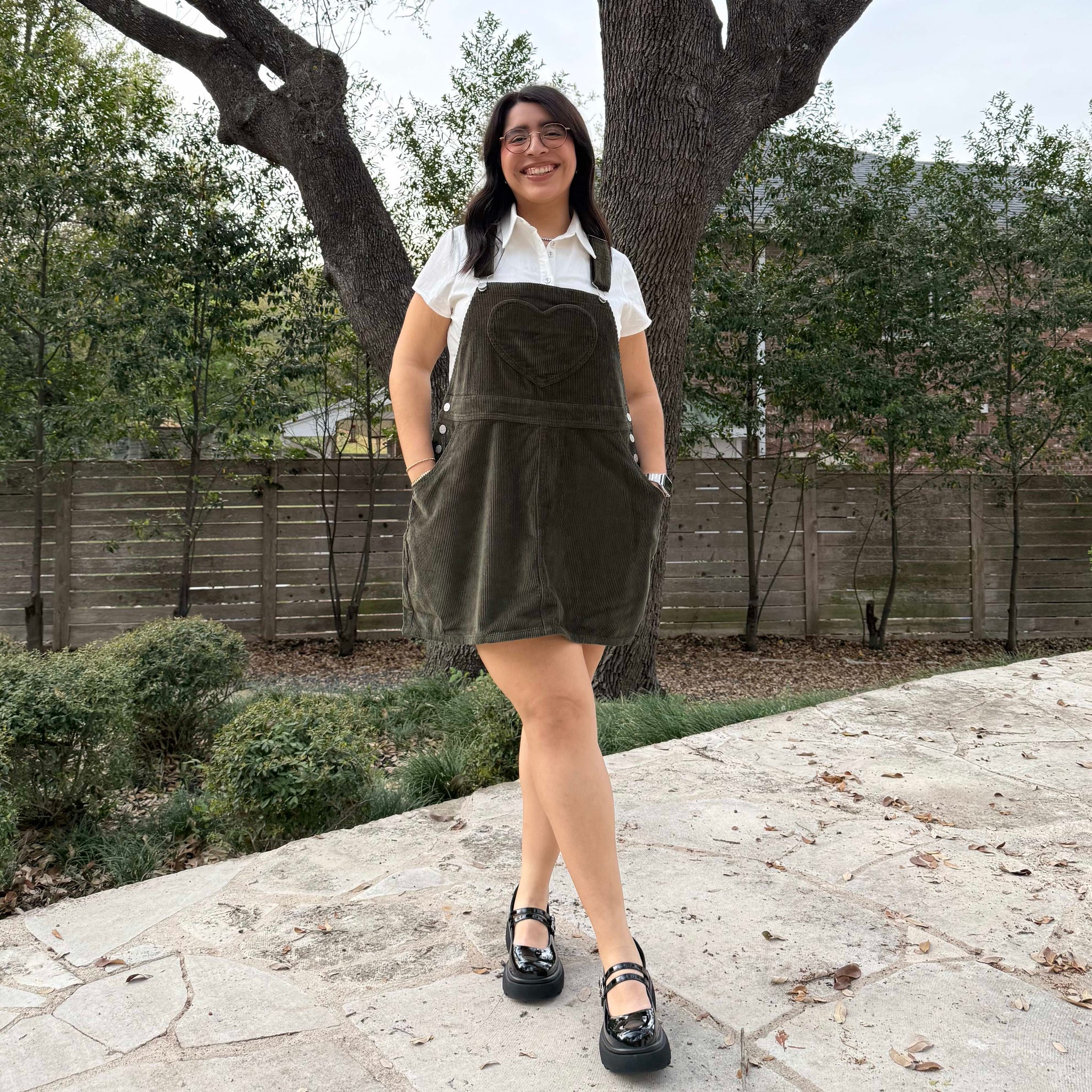 Corduroy Overall Dress - Olive *Clearance Sale*