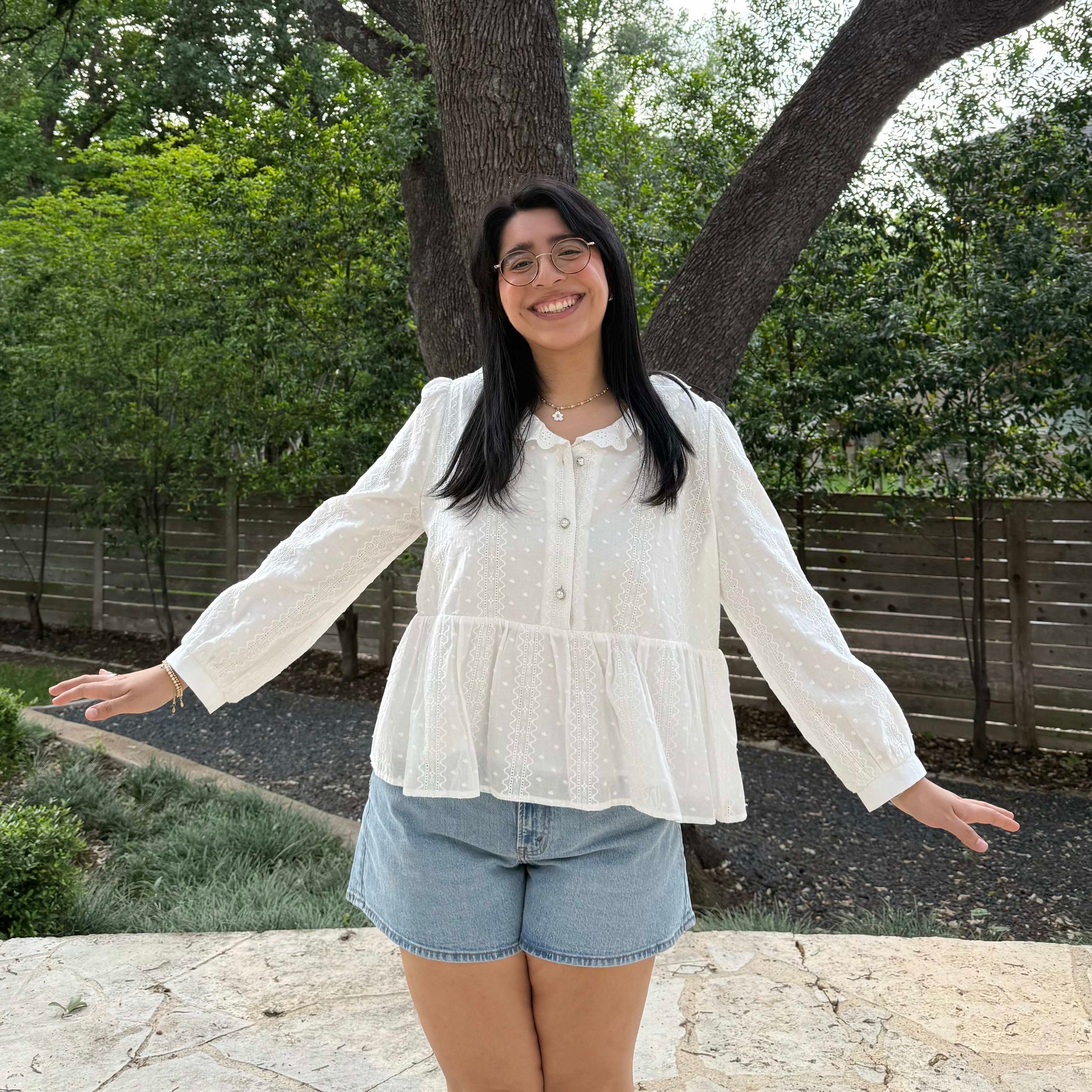 To get a similar fit to the model, we recommend going with the size which has a bust measurement around 4-5 inches larger than your own bust measurement.