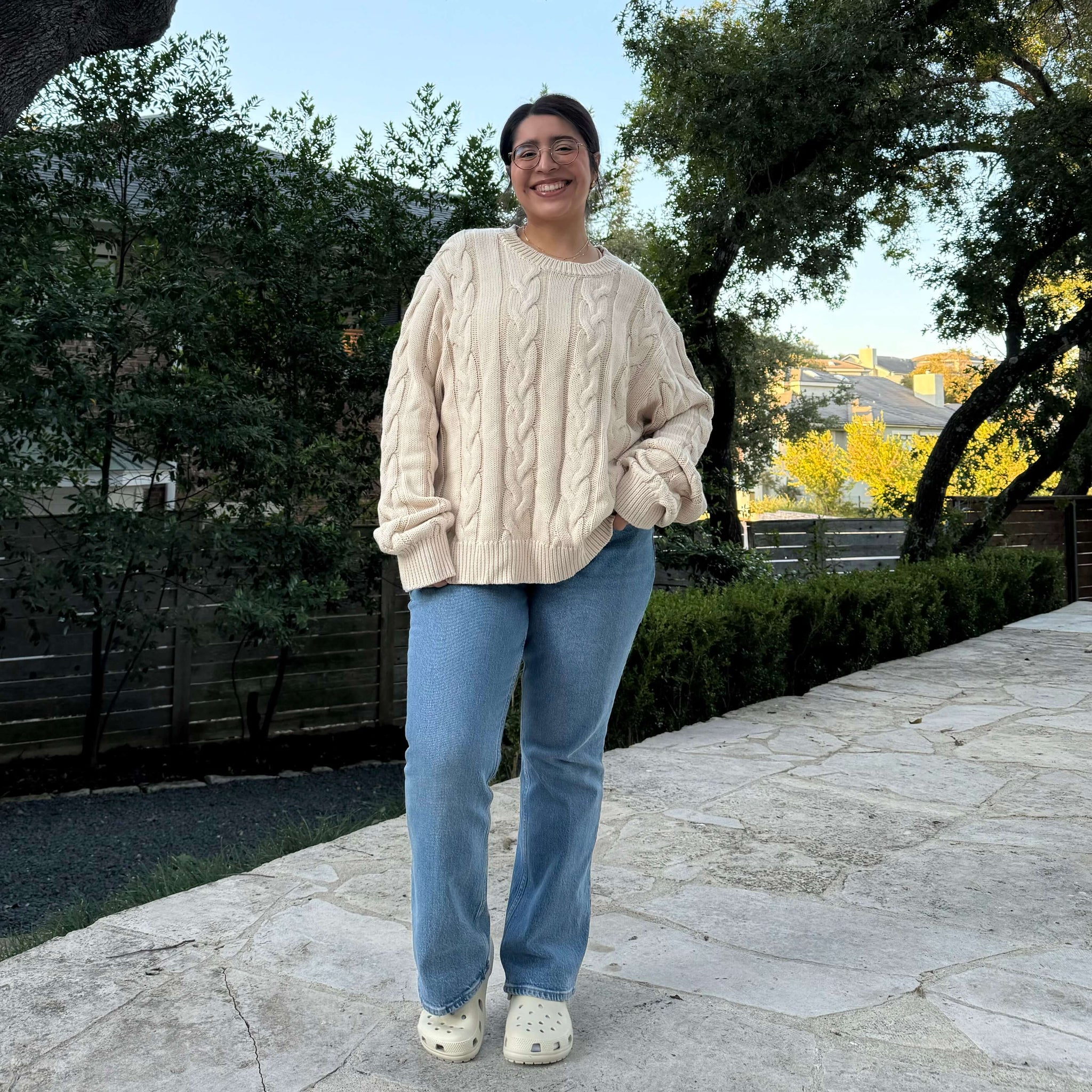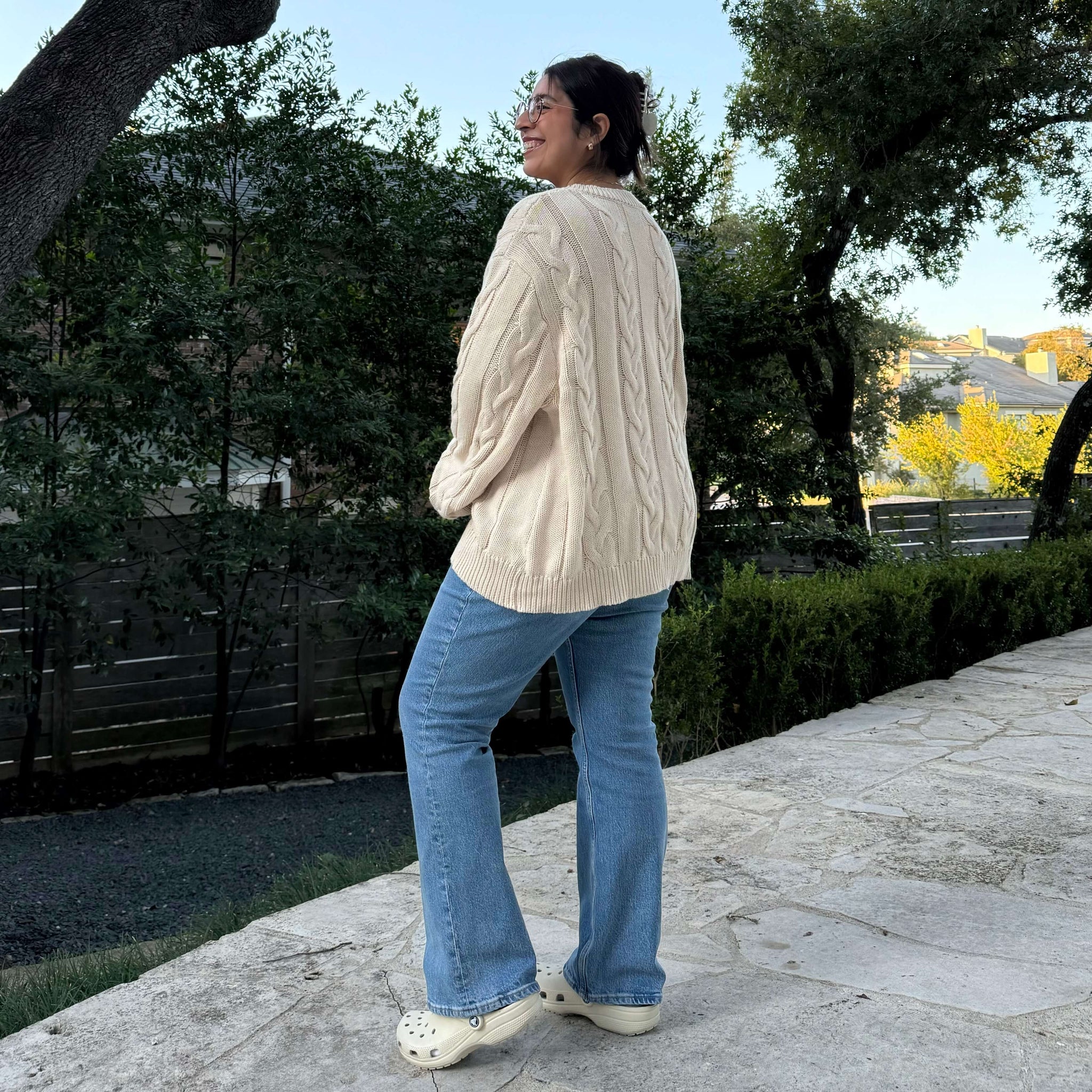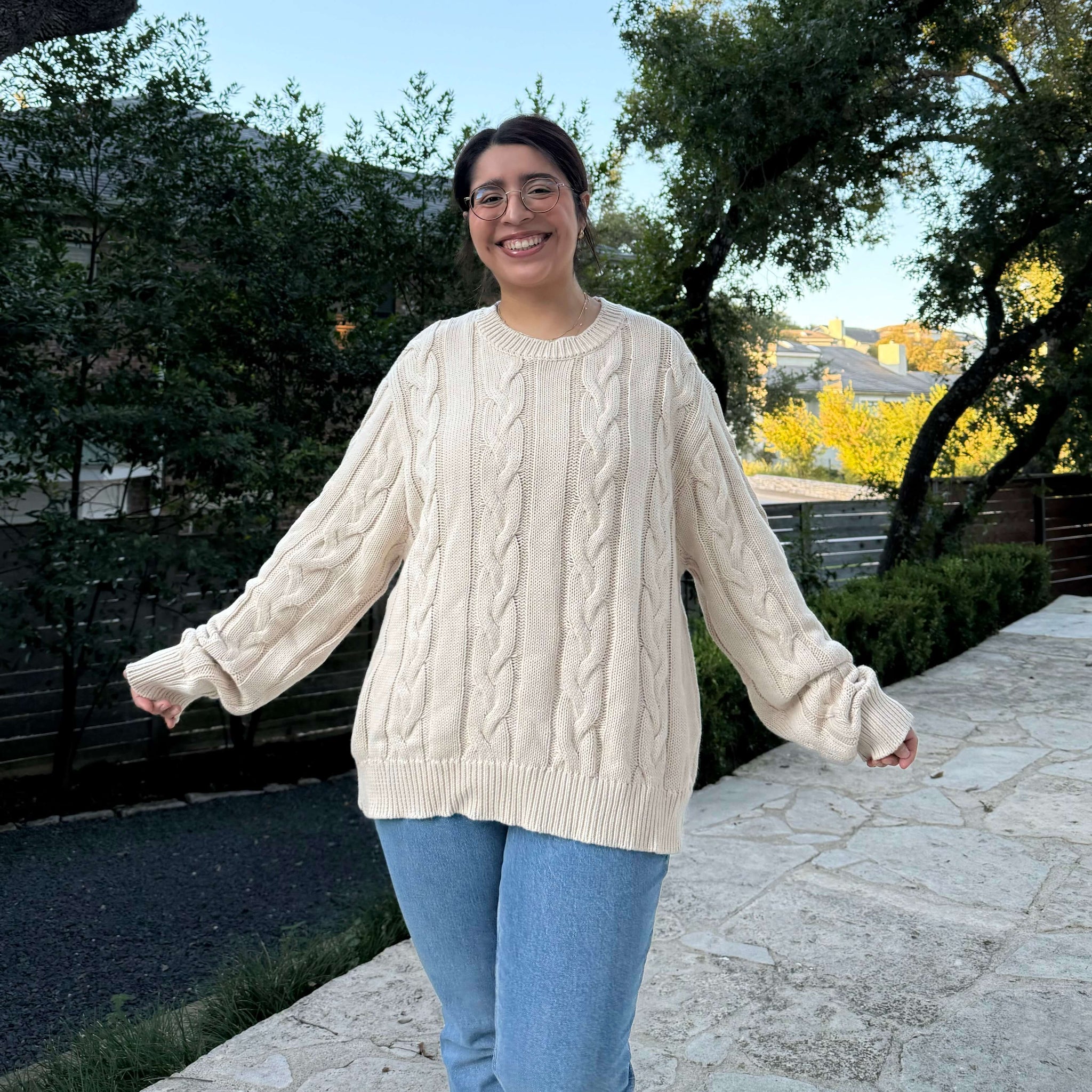 • The first-ever classic cable knit sweater designed to be oversized on bigger hips!