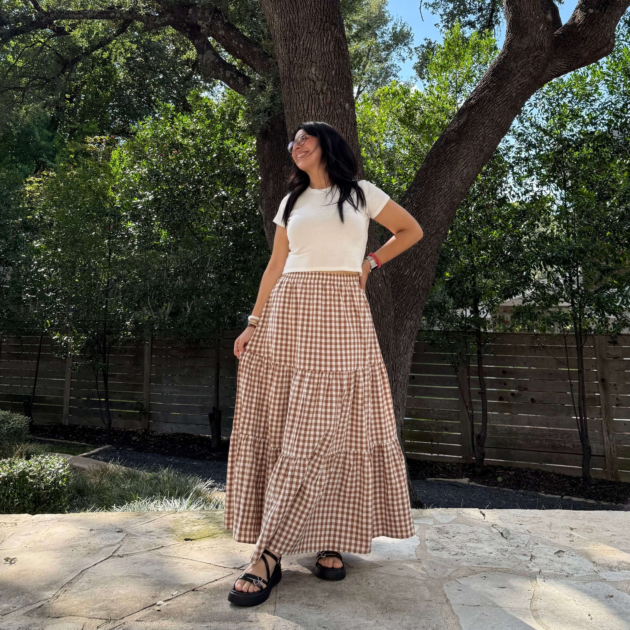 Gingham Long Skirt - Chestnut *Clearance Sale*