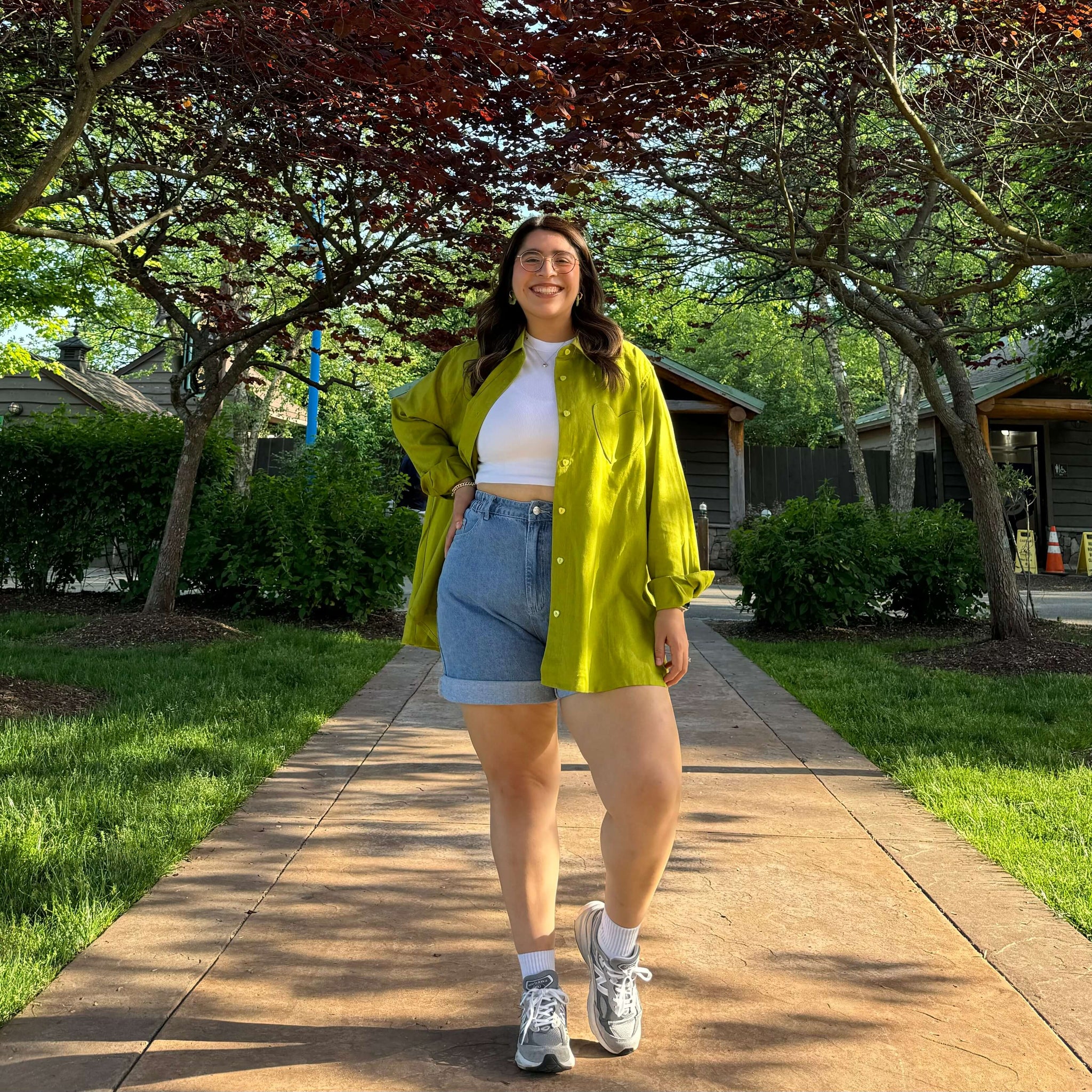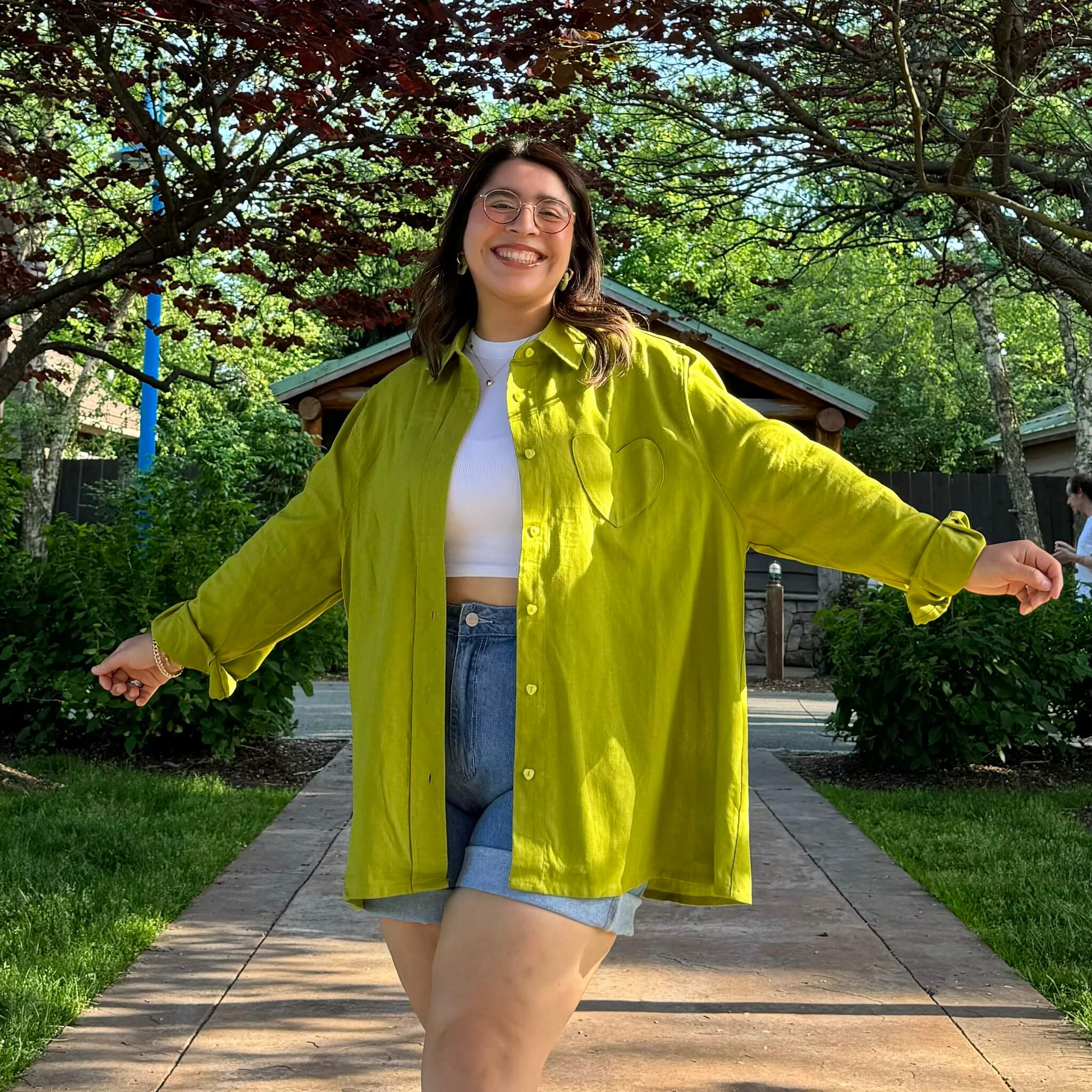 Linen Long-Sleeve Button-Up - Matcha *Clearance Sale*