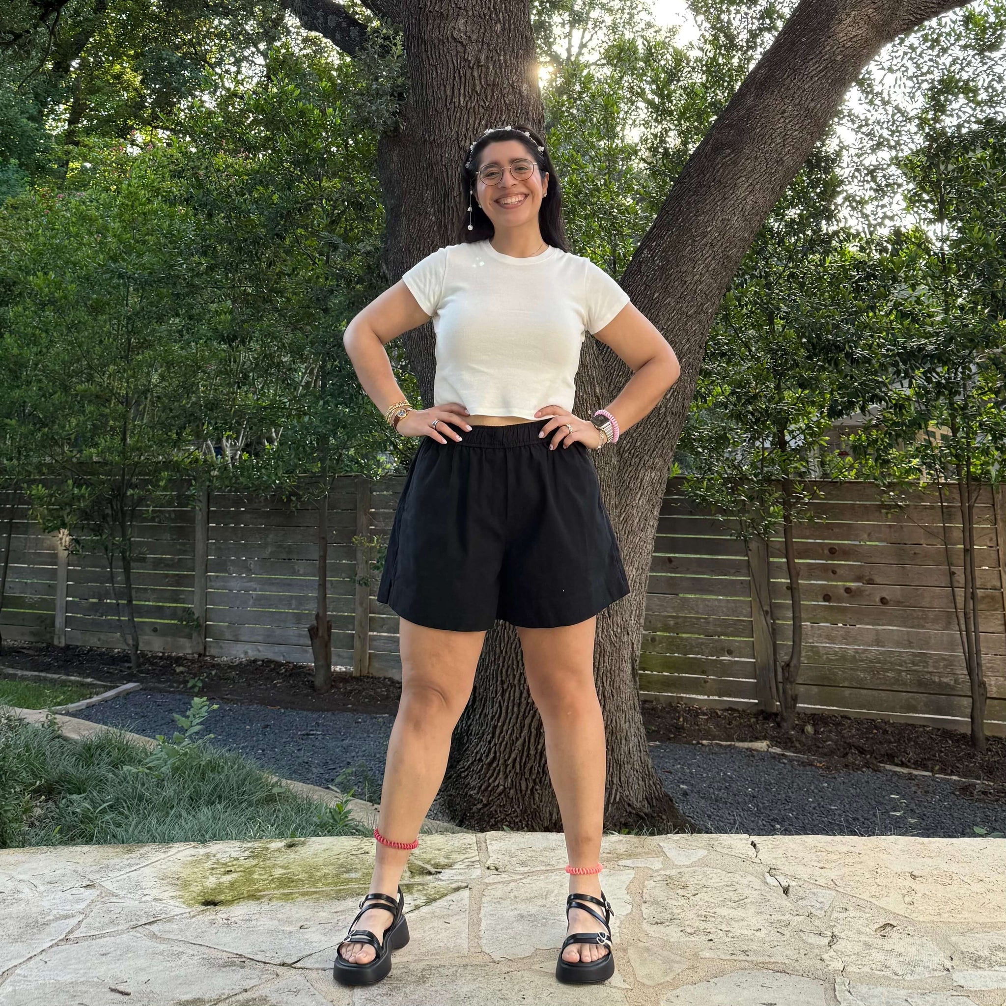 - The first ever linen boxer-inspired shorts designed for bigger hips!